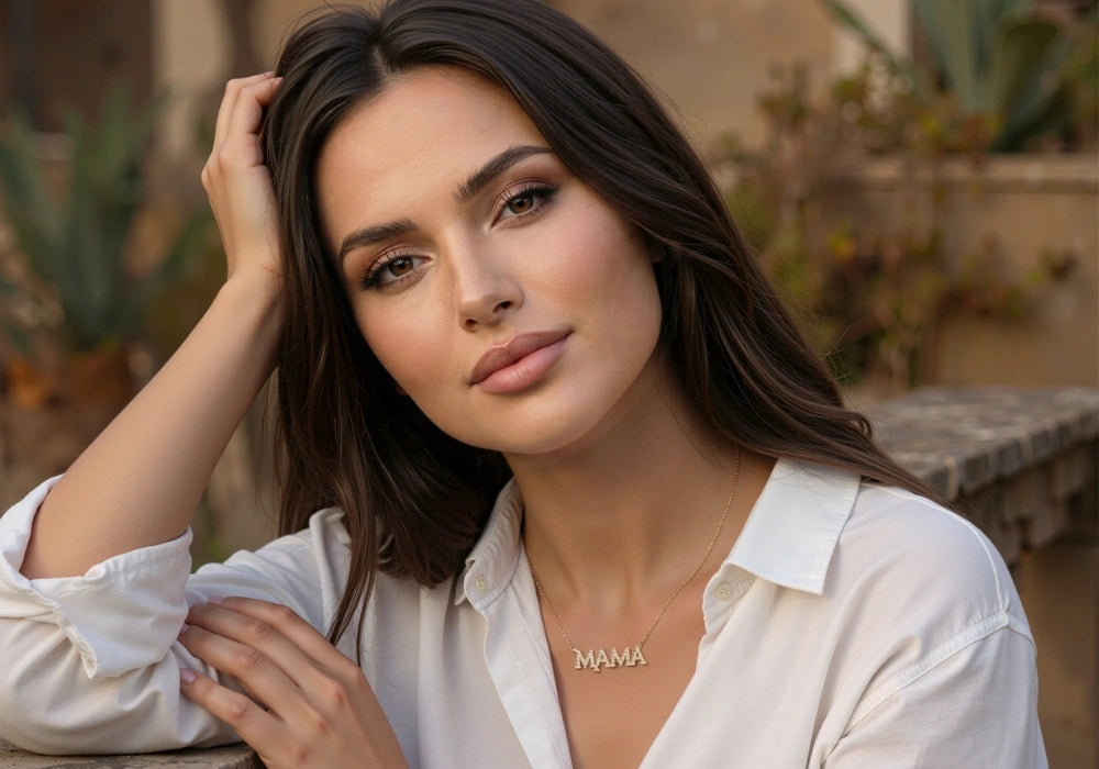 One of the most exciting parts is the choice. Maybe you love a bold, modern font that feels fresh and clean. Or perhaps you prefer something softer and script-like, with a more romantic feel. We also create Arabic diamond name necklaces, which many of our customers love for the way they connect to heritage and identity. And then there’s the Diamond “Mama” necklace, an elegant yet playful favourite among mothers who want to celebrate themselves or be celebrated. It’s personal, but still chic enough to wear every day.